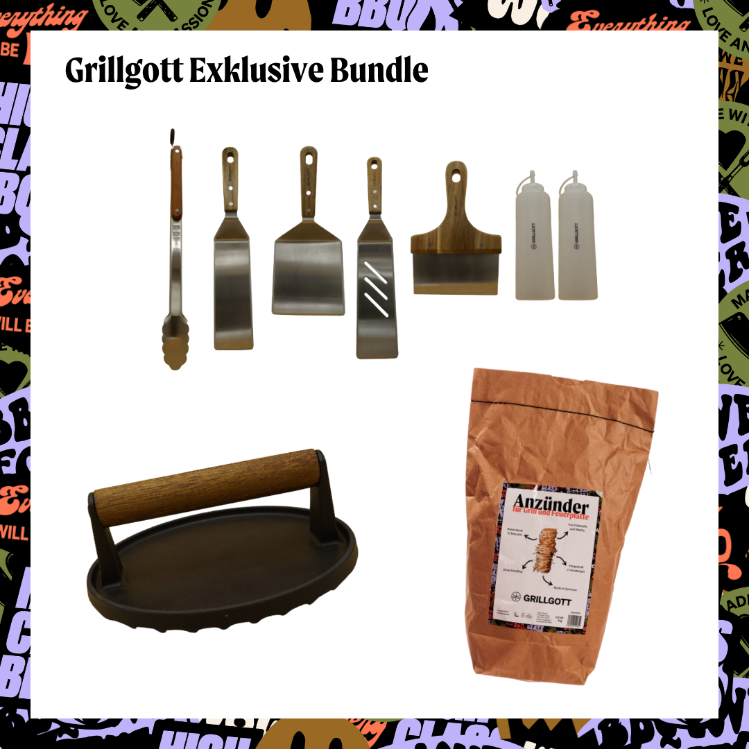 GrillGottFeuerplattenbundle Plancha-Set, Anzünder, Burgerpresse