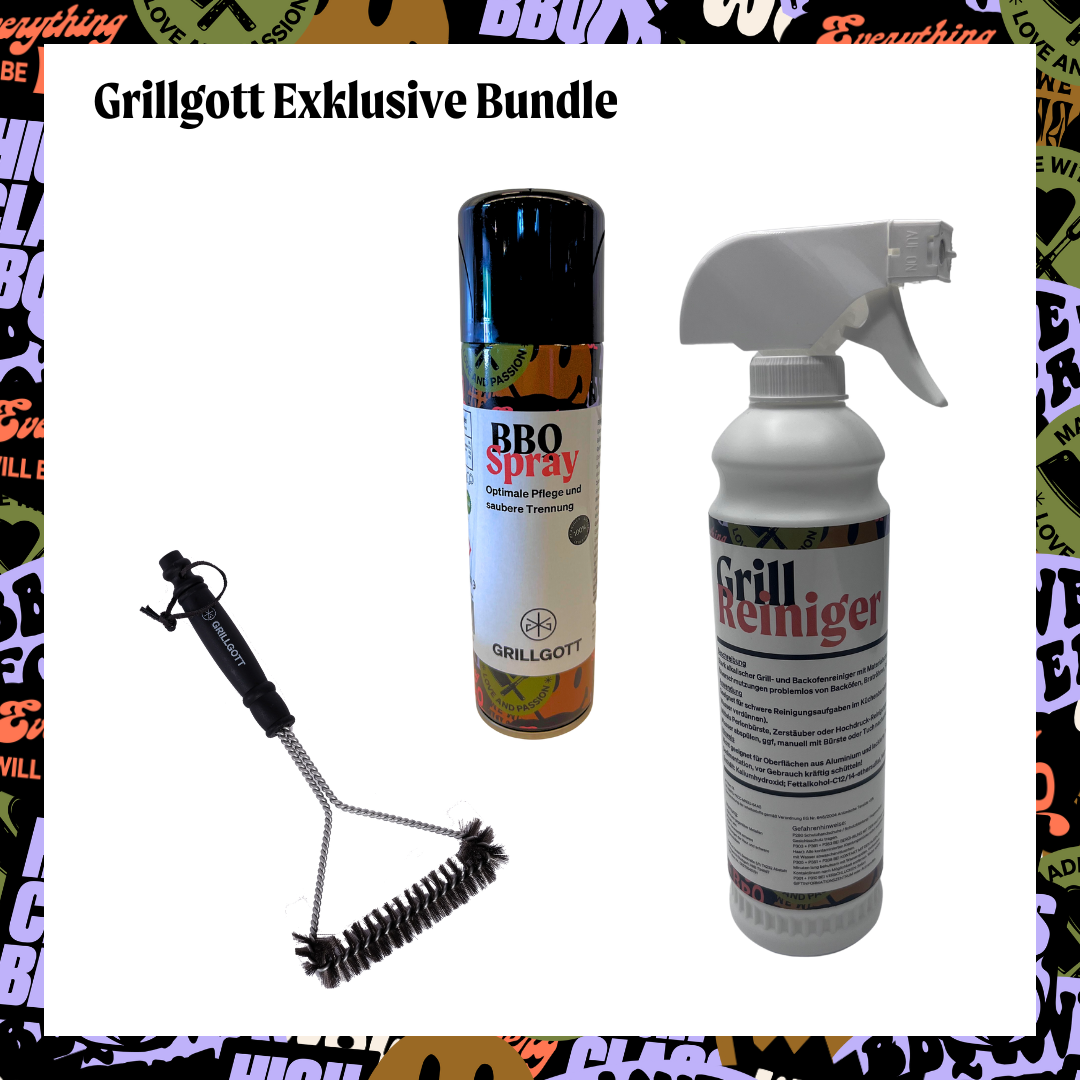 GrillGottReinigungsbundle Bürste, Grillreiniger, Pflegespray