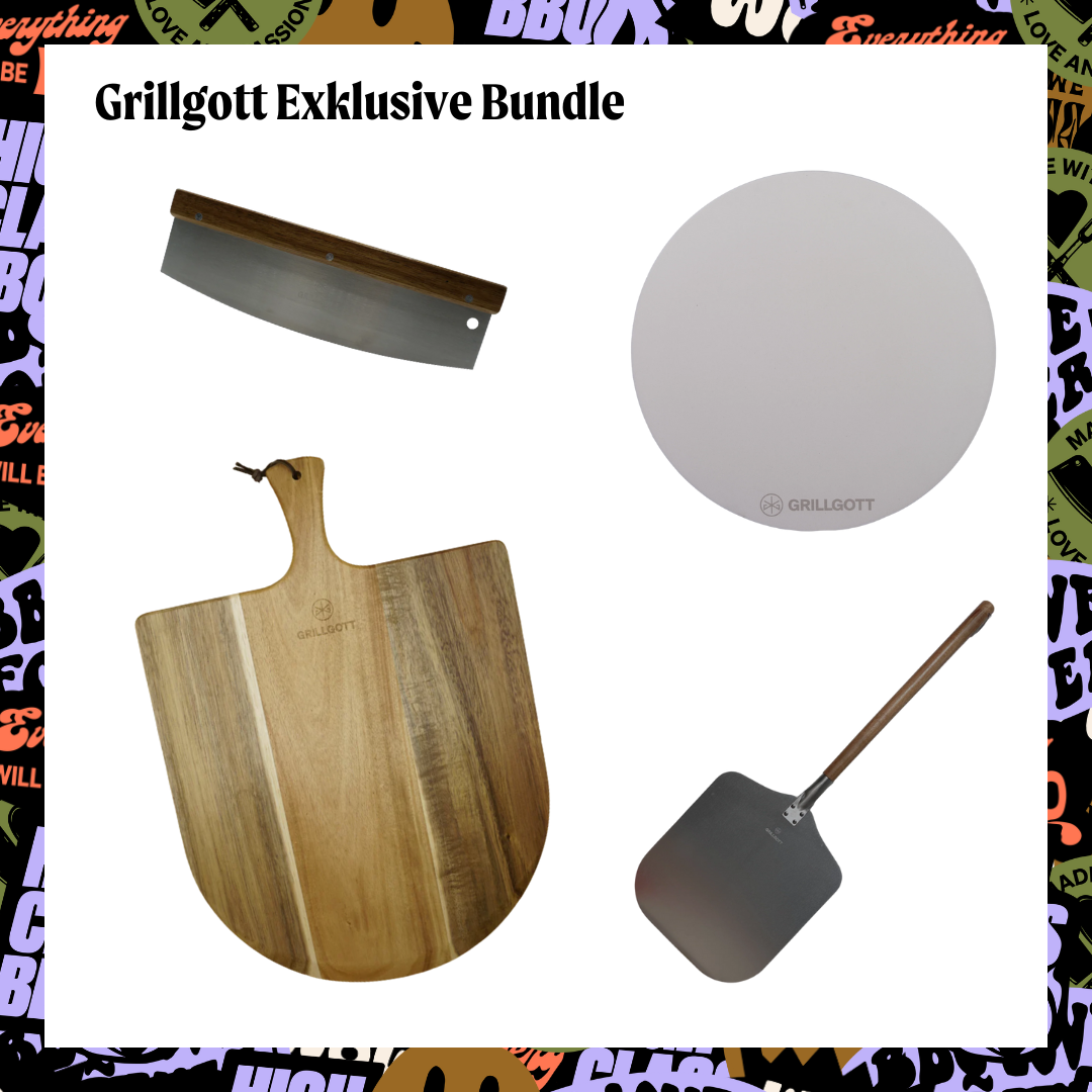GrillGottPizzabundle Pizzastein, -schieber, Servierbett und Wiegemesser
