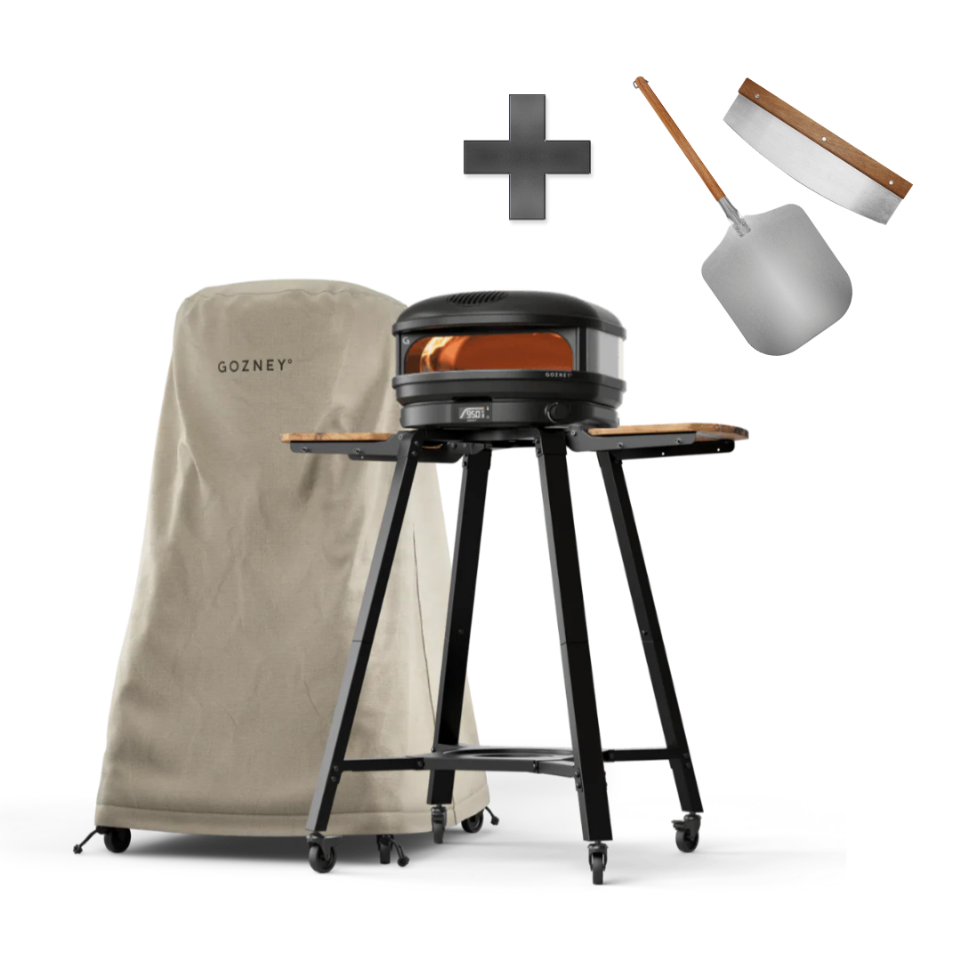 GozneyArc XL Pizzaofen Off-Black Must-Haves Bundle inkl. Pizzaschieber und Wiegemesser mit Tisch und Abdeckhaube