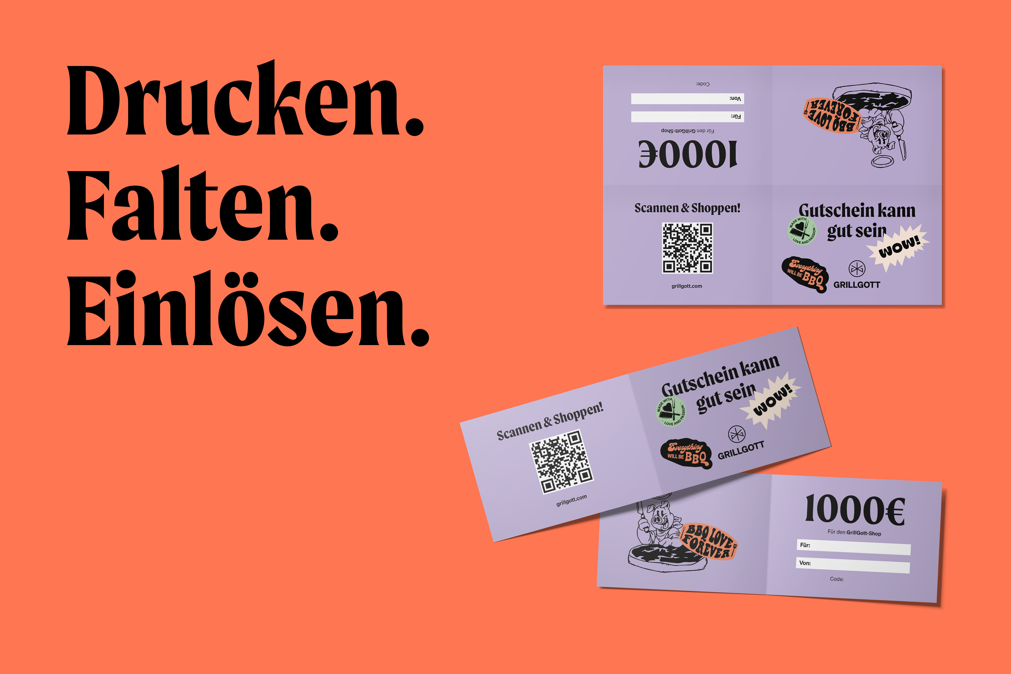 Der GrillGott Geschenkgutschein ist das perfekte Present für jede*n Grill-Liebhaber*in. Du bekommst den Gutschein ganz einfach per Mail von uns zugesandt. Anschließend kannst du ihn ausdrucken, ausschneiden, falten und verschenken.